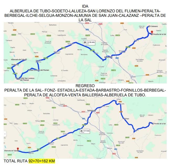 Este año se realizará un recorrido de 160km con salida desde Alberuela de Tubo a las 9.30 hrs y llegada a las 14:50hrs.